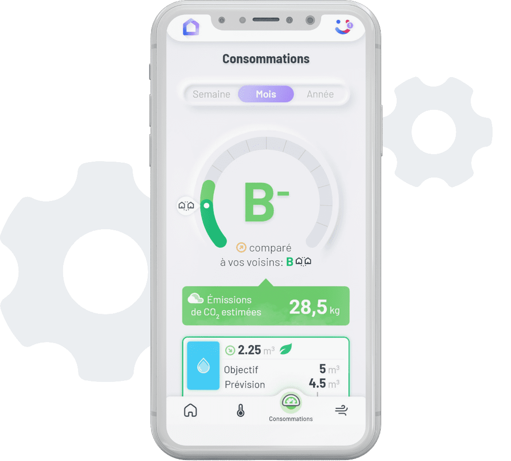 Notre stratégie pour une réduction des consommations effective combine un thermostat intelligent qui réduit le gaspillage et donc les charges énergétiques sans perte de confort ; mais aussi le suivi des consommations en temps réel, avec autocomparaison, comparaison à foyer équivalent et alertes afin que vos occupants puissent atteindre leurs objectifs.