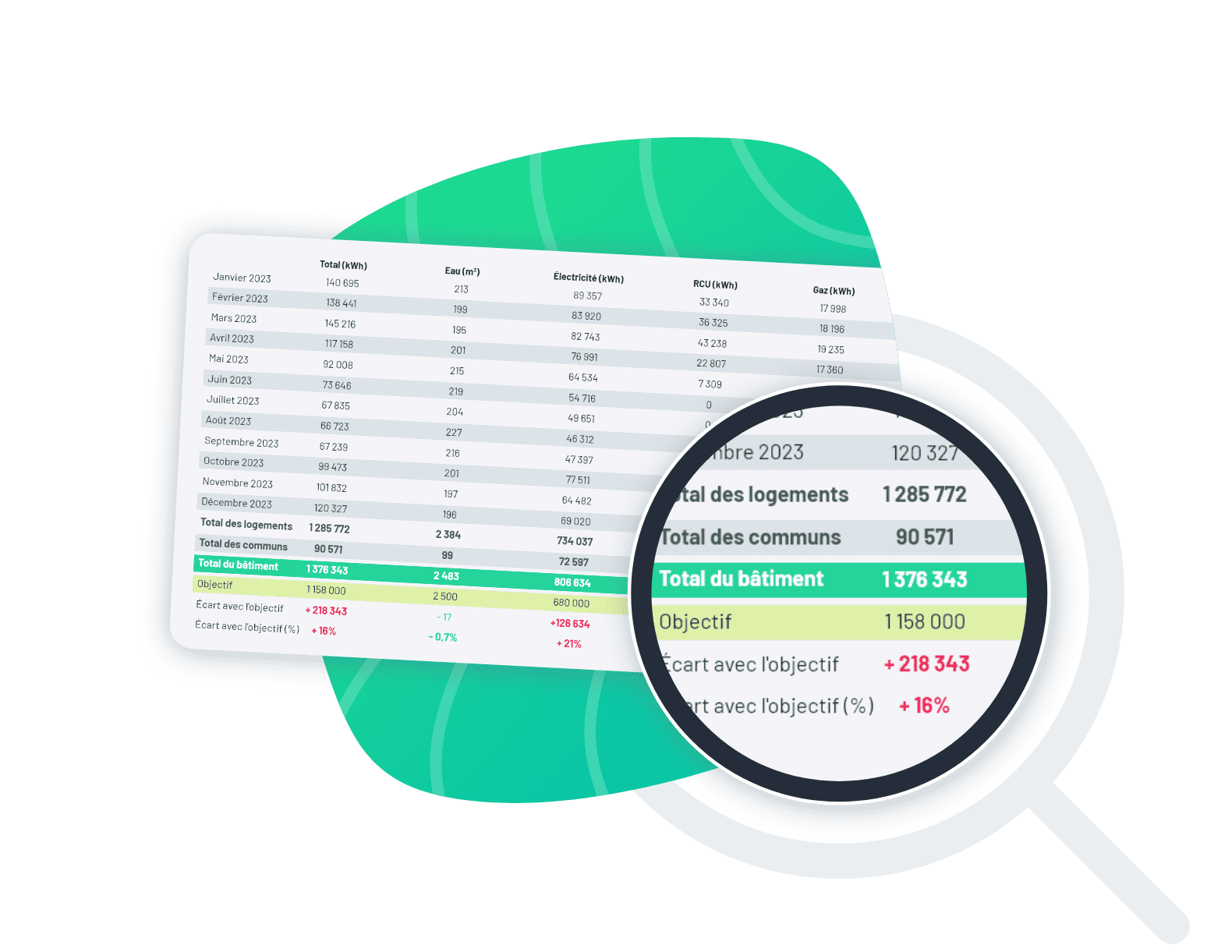 Détectez les écarts par rapport à vos objectifs prévisionnels ou les dérives et surconsommations, pour chaque espace d'entreprise, logement individuel, chambre d'hôtel etc.