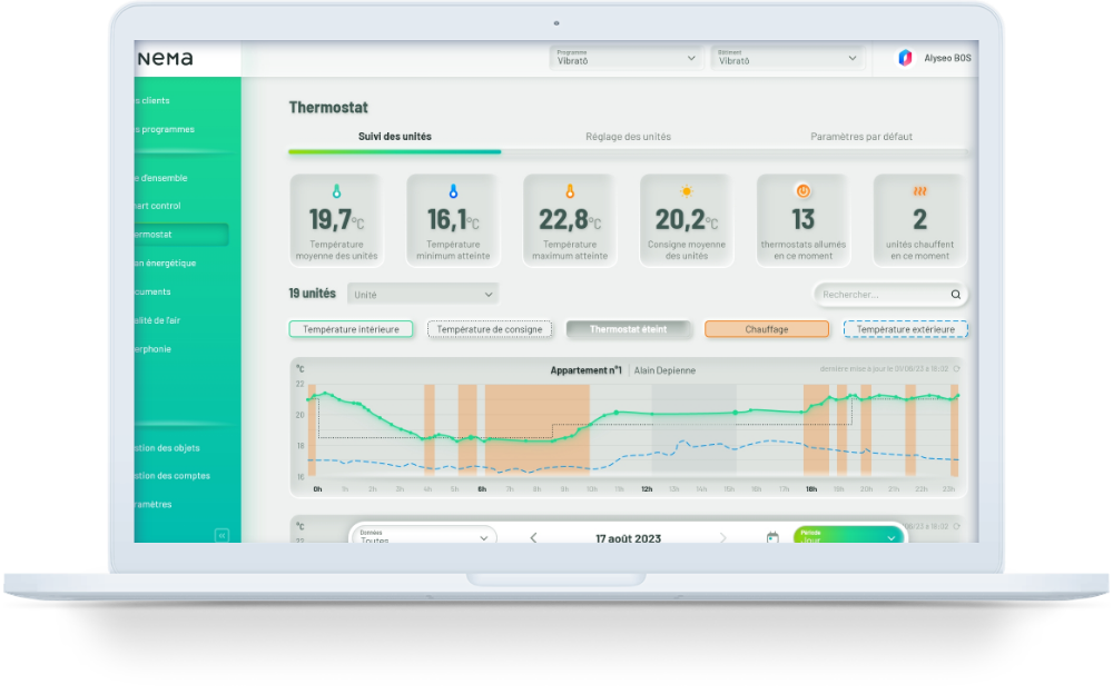 Grâce à NeMa, réglez, programmez et pilotez le thermostat de vos bâtiments à distance, et maîtrisez vos consommations de chauffage et de climatisation.